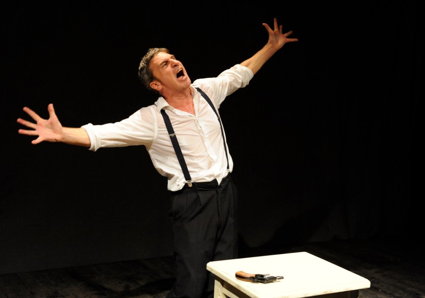 Quello su Majakovskij è un lavoro di sintesi tra quella che è stata la prima fase di Falso Movimento, un percorso di lavoro quasi esclusivamente sul gesto, e quella sulla drammaturgia. Majakovskij è un poeta che faceva della ricerca linguistica uno degli aspetti fondanti del suo lavoro, ha inventato “parole nuove” in russo, che inevitabilmente, si perdono nella pur formidabile traduzione di Ripellino. Proprio il rapporto con la sua poesia innovativa di attore mi ha permesso di utilizzare un linguaggio assolutamente non convenzionale. Ma credo il mio rapporto con la parola poetica dipenda anche dalla frequentazione con Antonio Neiwiller e Leo de Berardinis. Leo è stato un regista sempre molto attento a questo aspetto, sia nel lavoro su se stesso come attore, sia come Maestro nelle sue compagnie, ha formato attori capaci di un linguaggio altro. Riconosco questa tensione e se fossi libero (ma libero veramente) vorrei che il cuore del mio lavoro nei prossimi anni potesse essere la ricerca sul linguaggio dell’attore, un tema che non finisce mai di incuriosirmi, interrogarmi e stimolarmi.