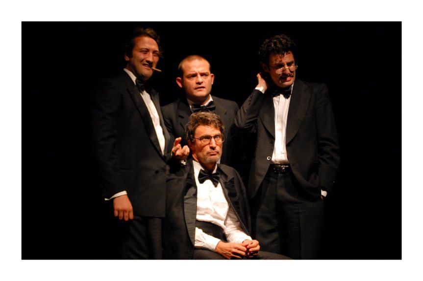 Quattro attori capaci di trasformarsi affidandosi con una totale e piena forza comunicativa al corpo, alla mimica del viso, alla voce e alla propria intera consapevolezza del palcoscenico, quattro attori che come maghi abilmente si fanno carico di una partitura di incastri che mozza il fiato per il talento comico perforante e terribilmente amaro dell’autore.