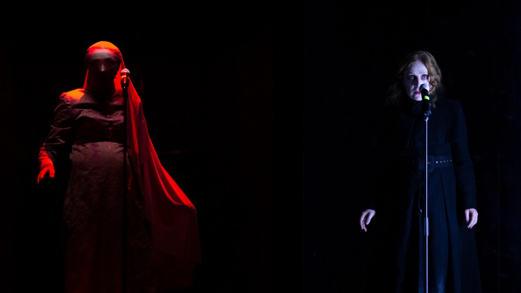 Fra i più importanti intellettuali italiani del Novecento, Giovanni Testori porta in teatro nel 1967 la figura della Monaca di Monza: figura storica di grande complessità prima ancora che personaggio dei Promessi sposi. Nella versione di Testori come in soggettiva cinematografica la protagonista, da morta, rivive la vicenda fin dal suo proprio concepimento avvenuto con atto brutale del padre su una delicata figura di madre, per poi passare a rievocare il disperato amore per Gian Paolo Osio, vero e proprio eroe nero e sanguinario che finisce i suoi giorni barbaramente trucidato.Valter Malosti e Federica Fracassi, entrambi pluripremiati dalla critica italiana, tornano a lavorare insieme portando in scena la confessione di Marianna De Leyva e concentrando il dramma di Testori su un triangolo: oltre alla protagonista, l’amante Gian Paolo Osio e la conversa assassinata dai due per metterla a tacere. I tre personaggi sono in realtà già morti. Parlano come revenants, isolati ognuno nel proprio flusso di coscienza.