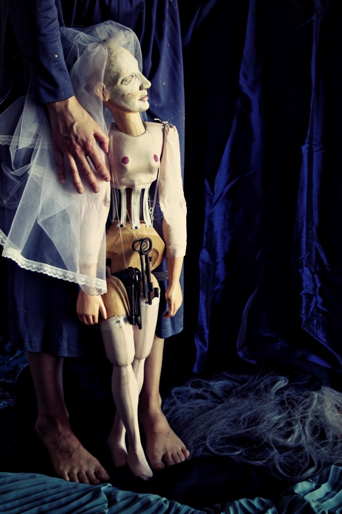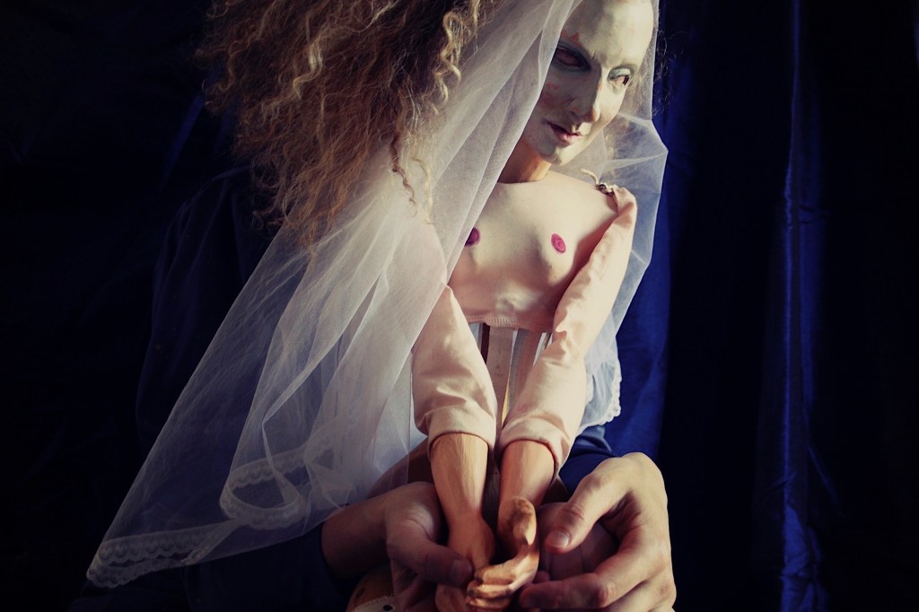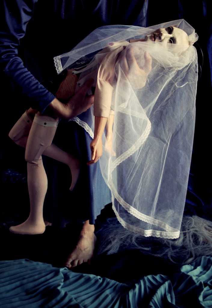 Blu. Così ho battezzato la marionetta-sposa che Alfonso Cipolla (il Direttore dell’Istituto per i Beni Marionettistici e il Teatro Popolare di Grugliasco, in Provincia di Torino) mi ha generosamente dato in affido e che mi ha suggerito di entrare nel mondo della fiaba, cercandovi gli aspetti misteriosi, magici, onirici. Durante questa pausa forzata – che ha svuotato e rinominato di nuovi significati la parola tempo – Blu ha acceso in me il desiderio di lavorare (nuovamente) sull’osservazione, sull’immaginazione, sulla scrittura del corpo, sulla temperatura delle emozioni, sulla vulnerabilità del presente, e sul silenzio.