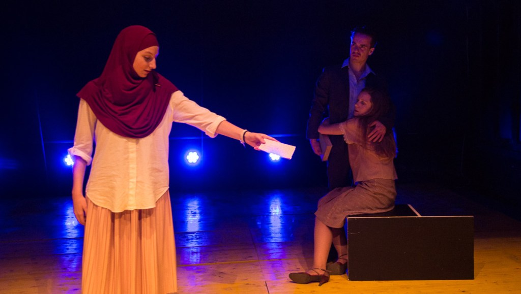 In scena ci sono sei persone: Haner, la madre di Haner, il padre di Haner, l’amore di Haner, la compagna di studi di Haner e la figura dell’autrice.