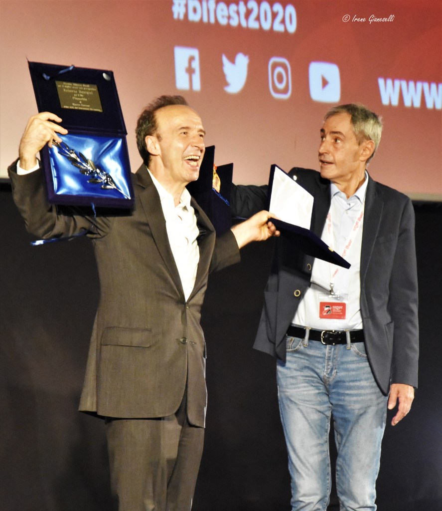 Per Benigni, il Cinema riempie le vite disadorne, poco prima aveva detto: «la cosa più importante della vita per me è il sentimento. Il sentimento è una sommità fiorita». Ricorda Sordi e Fellini, da I vitelloni a Lo sceicco bianco e il Bif&st gli ha consegnato proprio i due premi a loro dedicati dalle mani dell’amico Grieco e della Presidente Von Trotta: Premio Alberto Sordi come Miglior Attore non protagonista per Pinocchio di Matteo Garrone e Fellini Platinum Award per l’eccellenza artistica.