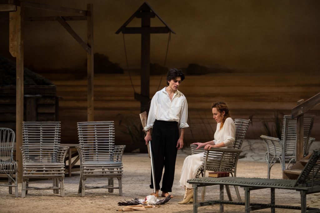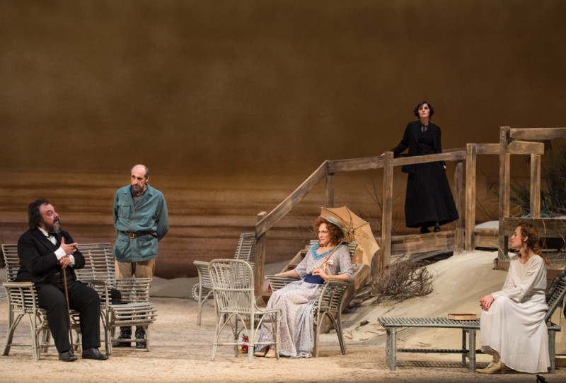 Al Teatro della Corte di Genova dal 28 febbraio fino al 19 marzo 2017 è in scena Il Gabbiano (una produzione del Teatro Stabile di Genova) per la regia di Marco Sciaccaluga, una regia consapevole e asciutta che gioca proprio sul reciproco incontro di attori e spettatori (sin dalla scena iniziale capita spesso che i personaggi si muovano nella platea buia continuando le proprie discussioni così sospesi prima di raggiungere la luce del palcoscenico) e che insiste con eleganza e misura sul gioco metateatrale.