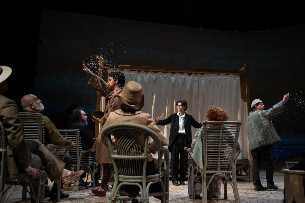 Čechov è condanna, non c’è molto spazio per pietismi, la sua è una scrittura che non si risparmia e che insiste sulle miserie morali anche attraverso le nevrosi linguistiche che in questa messinscena per scelta del traduttore Danilo Macrì e del regista sono decisamente più evidenti: sono state ripristinate le varianti del testo altre che per censura (e anche per intenzione dello stesso autore conciliante con il suo pubblico) nelle successive messinscene furono ignorate e questo permette di godere maggiormente dell’insistito oscillare dei protagonisti tra il tragico ed il ridicolo.