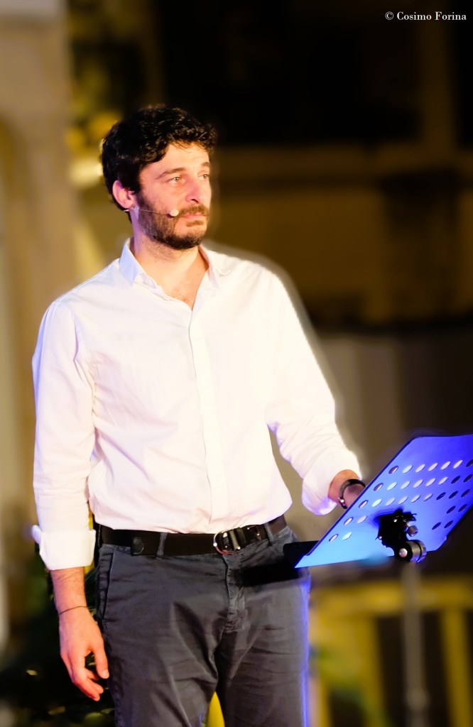 Proprio oggi che la formula “attore in scena con leggio” sembra essere troppo spesso un pretesto per proporre “prodotti” d’occasione strutturati con superficialità (lo sappiamo, oggi si ha la smania di svendere tutto e pure il teatro non sfugge alle logiche del mercato), Lino Guanciale propone una lettura scenica impeccabile: i brani scelti dal romanzo lo valorizzano e rendono al meglio il tessuto della narrazione, l’accurata scelta del commento musicale restituisce (da Maramao perché sei morto, passando per Cielito lindo, fino a Messico e nuvole di Jannacci) a pieno l’ambientazione delle vicende che si muovono tra Asti e la Repubblica di Salò, tra gli anni Venti e Trenta del Novecento. Anche la scelta di dialogare con lo scrittore e di lasciare a lui il compito di guidare gli spettatori con la propria voce nei brani in cui è il narratore a condurre il gioco, si rivela gustosa.