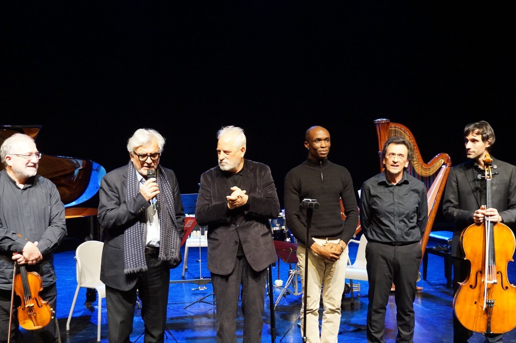 Piersanti accoglie queste differenze senza tentare di uniformarle. Anzi, le lascia incastonarsi nel tessuto musicale come elementi strutturali, parte integrante della morfologia del pezzo. L’ensemble non accompagna le voci: interviene come un organismo che delimita zone, apre varchi, introduce tensioni timbriche. Le percussioni, impiegate con estrema economia, scandiscono soglie più che ritmi, producendo superfici d’urto che orientano la percezione del tempo. Il pianoforte, suonato dal compositore, diventa il cuore timbrico della partitura: linee spezzate, accordi rarefatti, un tocco di una delicatezza quasi disarmante. Non è una delicatezza sentimentale, ma funzionale: abbassa la pressione sonora per offrire alla parola lo spazio necessario, costruisce un ambiente in cui il racconto possa respirare, evita che la musica sovrasti ciò che vuole custodire.